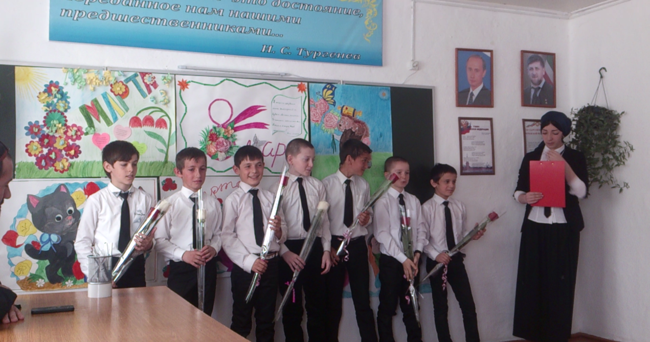 Во всех классах проведены классные часы, посвященные данной тематике. На занятиях проводились беседы с целью ознакомления учащихся с возникновением праздника, поздравление девочек. Классные часы провели на тему "8марта -Международный Женский День", "Милые мамы" в начальных классах.