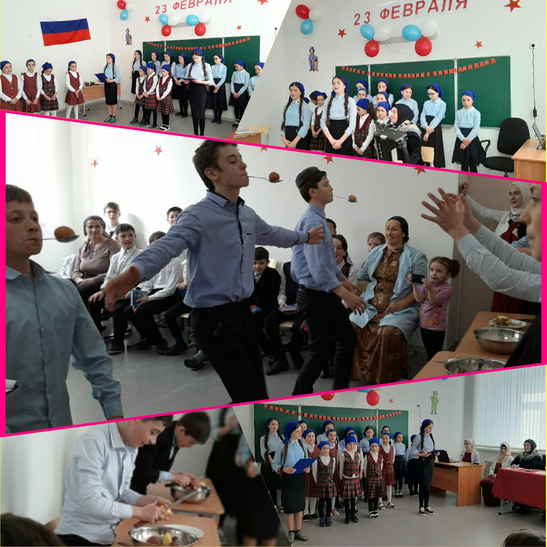 На мероприятие были приглашены родители обучающихся. Праздник начался с распределения мальчиков на команды. Девочки вошли в команды болельщиков. При завершении конкурсов и подведении итогов были вручены грамоты, первое место заняли обучающиеся 8 класса. Затем последовало поздравление мужской половины с Днем защитника Отечества.