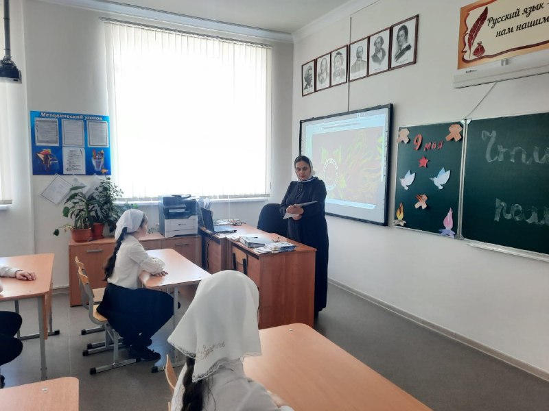 30.04.2023С целью содействия в духовно- нравственном развитии и воспитании учащихся, патриотизма, уважения к Отчеству, уважения к государственным Праздникам России,Малика Хамидовна провела классный час «Чтим и помним» в 5-7 классе.