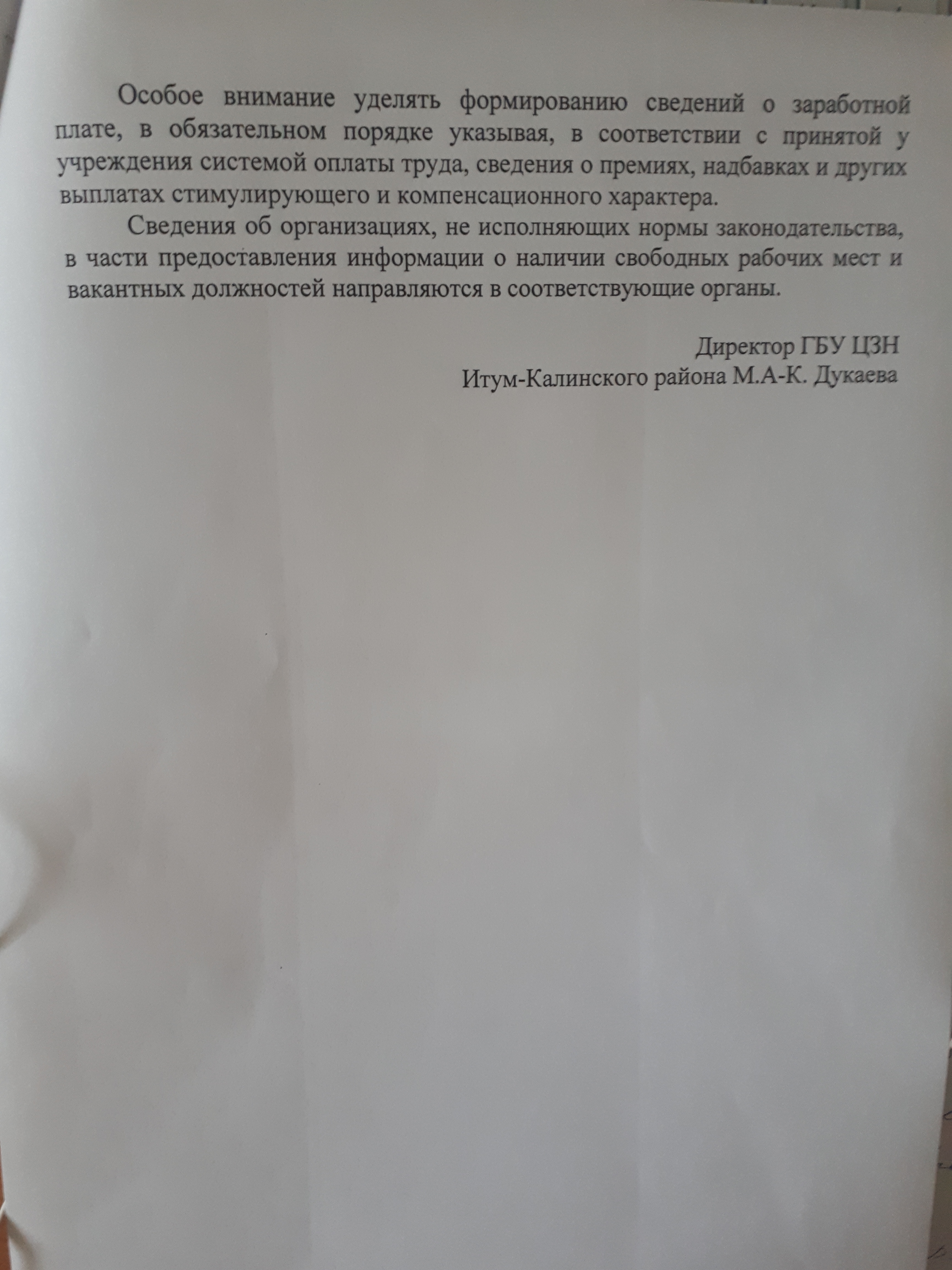 Обращение директора ГБУ "ЦЗН Итум-Калинского района" об исполнении протокольного поручения Главы Чеченской Республики